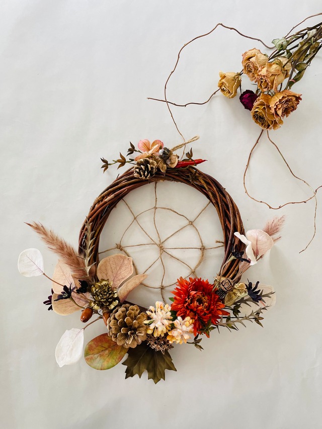 数ある作品の中よりご覧いただき ありがとうございます⭐︎ 【2024年秋の新作】 ハロウィン直前割引中!3850→3700円 秋にぜひ飾りたい! 秋色満載のオータムリース 優しいベージュ色のリースに 右側は緑のグラデーションで葉やパンパスを 左側は赤やオレンジのグラデーションで 紅葉する様子を表現 中央には松ぼっくり、シダーローズ コットン等 秋の木の実をふんだんに盛り込みました あえてお花を使わずに木の実だけで 華やかさを演出しています 魔女やカボチャ等ハロウィンモチーフは 控えめにし、さりげないハロウィン感で 子どもから大人まで楽しめるようなデザインに 仕上げています アートフラワーをベースに一部ドライ素材を使用、 経年劣化少なく長く綺麗な状態でお楽しみ頂けます ◇サイズ◇ リース直径28cm ドアリースとしても掲載写真のように バランスの良い大きさです。 軽い花材で仕上げており 飾る場所・留金具を選ばず飾って頂けます。 引っかける紐をつけていますので 100円ショップ等でフックをご用意いただき 飾ってくださいませ。 ◇無料ラッピング◇ セロファンにて中身が見えるよう 無料ラッピングいたします。 ラッピング見本写真を画像にて掲載しています。 プチギフトなどにもご利用くださいませ♪ メッセージカードの代筆も承ります。 ◇飾り方のご提案◇ ・ドアリースとして玄関に季節の彩りを ・ウォールデコレーションで 秋やハロウィンの模様替えに ・木の実やパンパスなど秋らしい花材で ハロウィンを過ぎてもオータムリースとして 長く飾っていただけます ・ハロウィンモチーフは控えめにしていますので 落ち着いた空間、店舗ディスプレイとして さりげなく飾っていただくのもおすすめ! ◎送料無料◎ 【定形外郵便】にて送料無料でお届け! (ただし保証、追跡はありません) ご注文【2-5日以内】に発送手続き致します またお届け先毎にご注文ください。 #送料無料 #秋 #リース #ドアリース #ハロウィン #オータムスワッグ #オータムリース #ハロウィンリース #ジャックオランタン #壁飾り #玄関 #シダーローズ #パンパス #ユーカリ #とうがらし #木の実 #松ぼっくり #楓 #子ども部屋 #カラフル #秋色 #模様替え #店舗ディスプレイ #プチギフト #BASEフォロー割