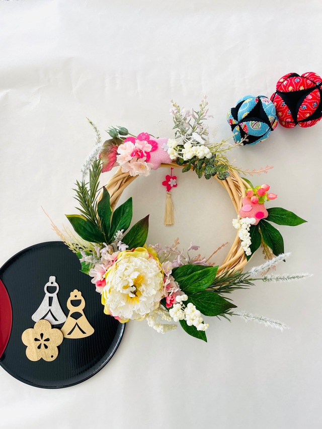 ひなまつりリース⭐︎桃の節句 初節句のお祝いに✳︎桜 新緑ピオニー 春リース パステルカラー