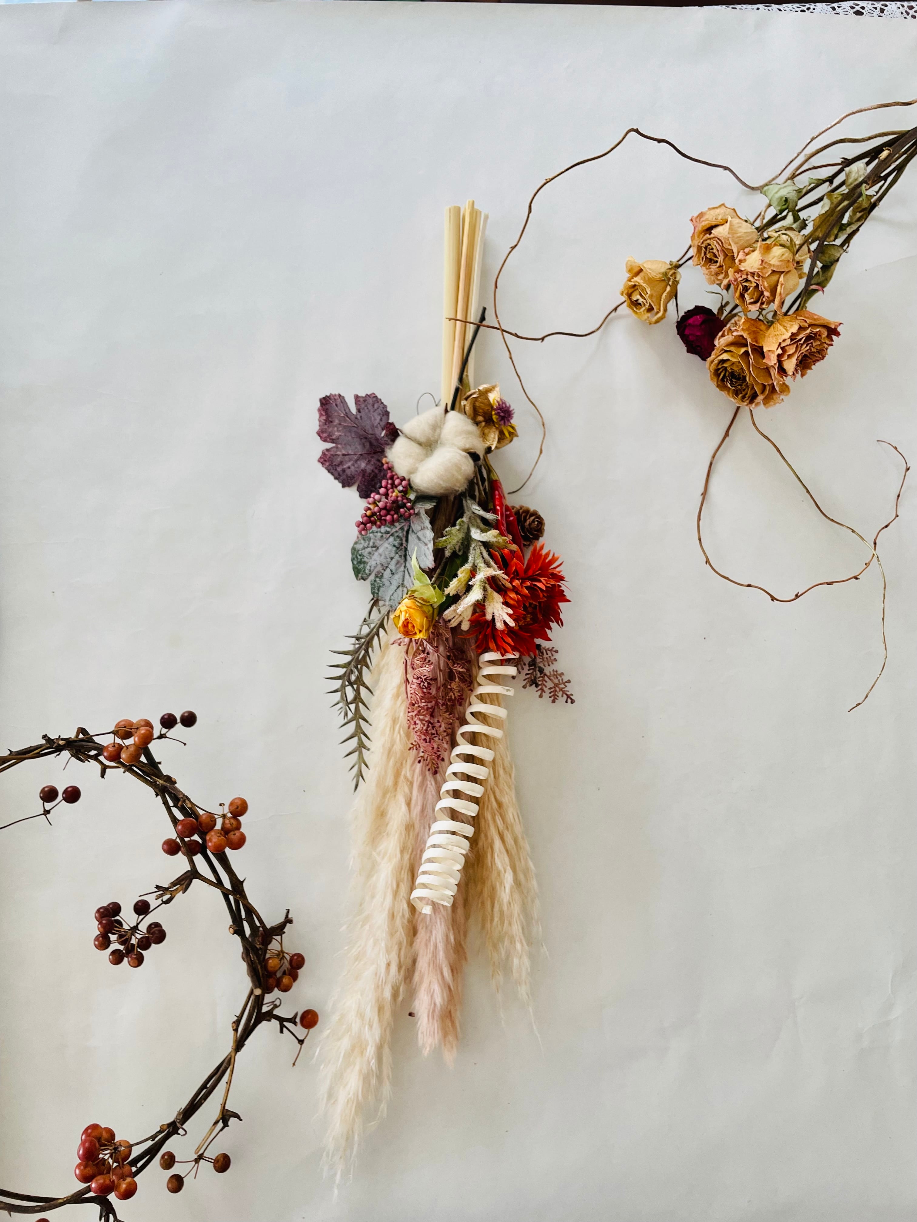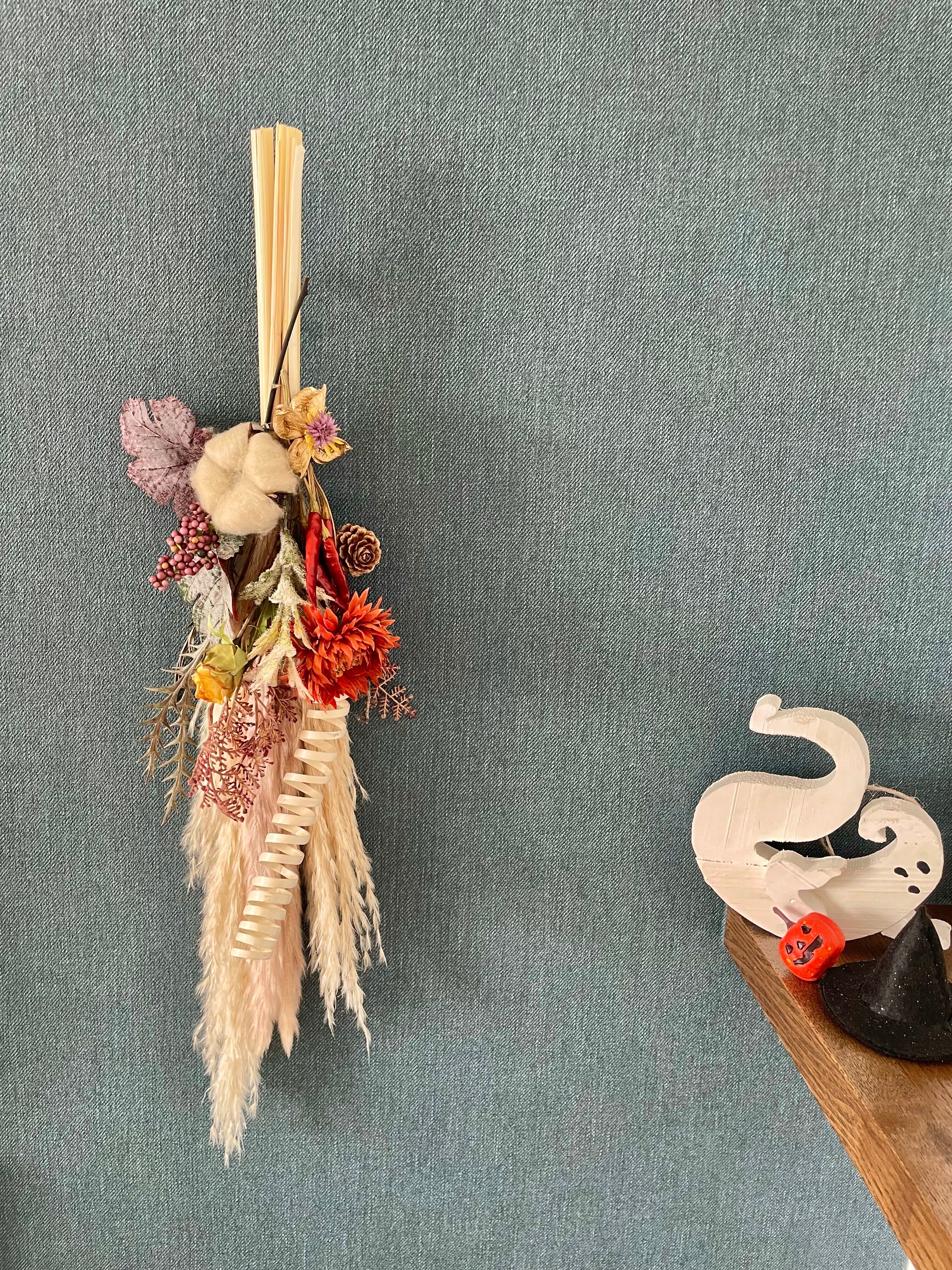 ハロウィン直前割✴︎【2024秋新作】パンパスほうきスワッグ⭐︎ハロウィンカラーでさりげなく